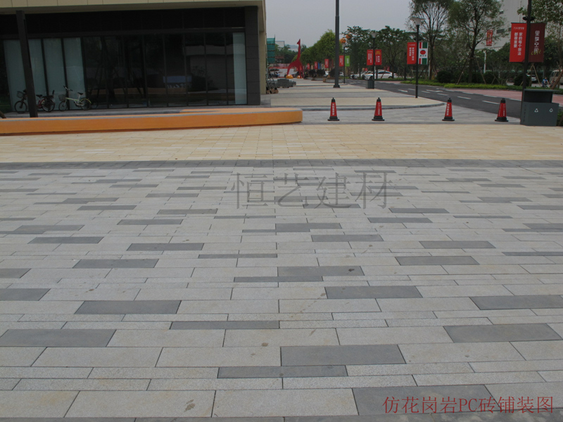 恒艺PC砖,仿花岗岩砖,PC仿石砖质感自然,美观大方,且造价便宜。具有混凝土的高强度、耐久性、耐磨性、耐候性、抗冲击性、不易褪色等特点,又赋予了材料的色彩艺术特征,多样化的造型为地面工程环境设计提供了更为广阔的选择和创造空间。