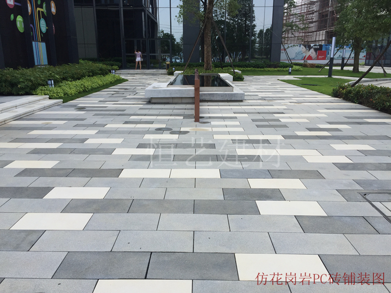 恒艺PC砖,仿花岗岩砖,PC仿石砖质感自然,美观大方,且造价便宜。具有混凝土的高强度、耐久性、耐磨性、耐候性、抗冲击性、不易褪色等特点,又赋予了材料的色彩艺术特征,多样化的造型为地面工程环境设计提供了更为广阔的选择和创造空间。