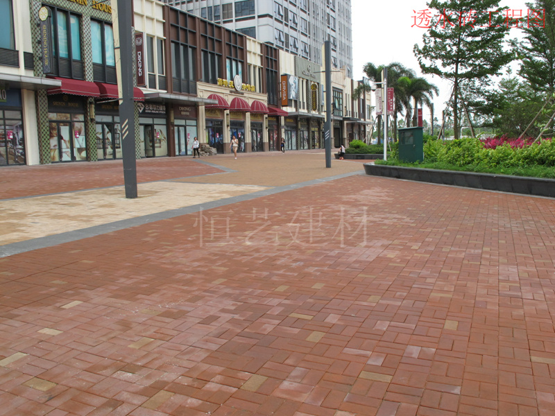恒艺环保透水砖,彩砖,广场砖,人行道路砖,环保砖采用高压振动骨面料制作。具有环保、高强度、耐磨不脱层、透水透气、通透散热、隔音防滑、色彩鲜艳不易褪色等特点。 适用多种场合,如学校、市政道路、高级楼盘、体育场所、大型广场等路面铺设。